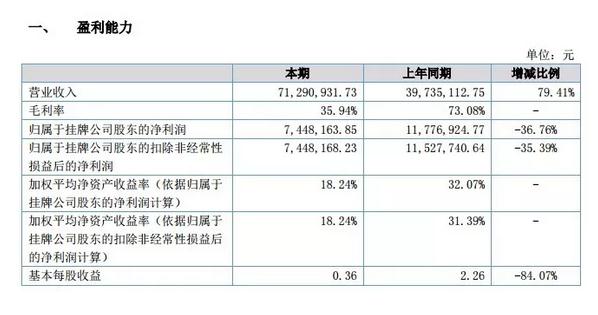 公司上半年收入7130萬元,利潤745萬元。
