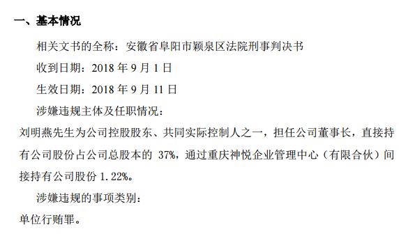 挖貝網 9月5日消息,新三板掛牌企業(yè)神州能源(837934)原董事長劉明燕因行賄被判有期徒刑1年,并處罰金20萬。