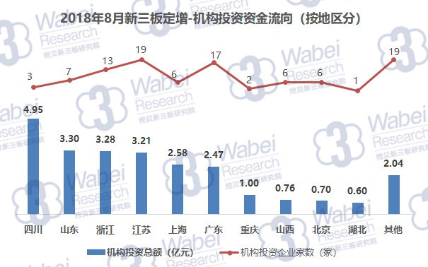 2018年8月,新三板企業(yè)共定增募資42.08億元,其中,機(jī)構(gòu)對企業(yè)投資24.89億元,環(huán)比降9.7%。機(jī)構(gòu)投資總額占新三板企業(yè)募資總額的59.1%。