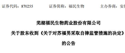 挖貝網(wǎng) 9月6日消息,新三板掛牌企業(yè)福民生物(870255)實(shí)控人之一蘇福男減持股票過(guò)程中違規(guī),被全國(guó)股轉(zhuǎn)公司處罰。
