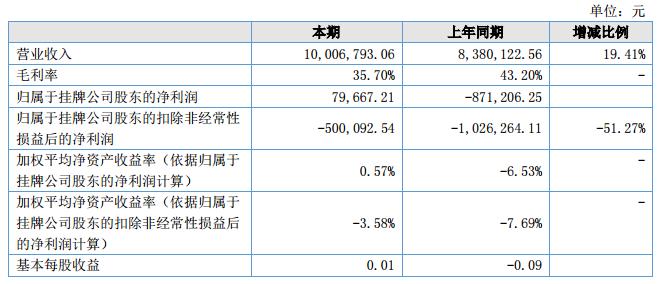挖貝網(wǎng)9月10日,瑞奧物聯(lián)(證券代碼:831927)近日公布的2018年半年報顯示,截至2018年6月30日,企業(yè)實現(xiàn)營收1000.68萬元;歸屬于掛牌公司股東的凈利潤為7.96萬元。
