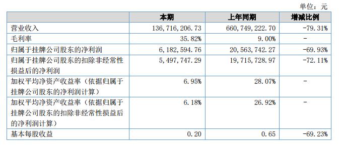報告期內(nèi)實現(xiàn)營業(yè)收入136,716,206.73元,比去年同期下降79.31%,主要因為公司根據(jù)市場需求對公司在售產(chǎn)品進行調(diào)整,大幅度減少了智能流量業(yè)務所致。報告期內(nèi)毛利率35.82%,比去年同期增長298.13%,主要因為低毛利產(chǎn)品智能流量業(yè)務收入大幅度降低所致。報告期內(nèi)實現(xiàn)凈利潤6,182,594.76,比去年同期下降-69.93%,主要因為北京尚通物聯(lián)網(wǎng)業(yè)務處于產(chǎn)品開發(fā)、市場開拓的投入階段,故此北京尚通上半年虧損6,295,695.47元。公司呼叫中心業(yè)務及智能短信流量業(yè)務上半年分別實現(xiàn)凈利潤5,694,884.64元、6,783,405.59元。?