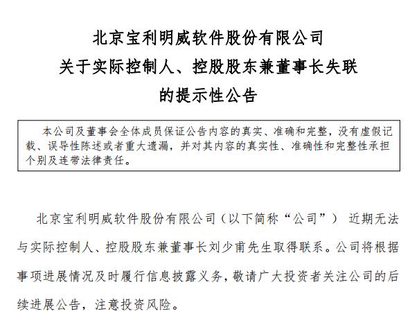 劉少甫作為公司實際控制人、控股股東兼董事長近期處于失聯(lián)狀態(tài),可能出現(xiàn)不行使股東權(quán)利的情形,公司管理層可能出現(xiàn)重大變化的風險。
