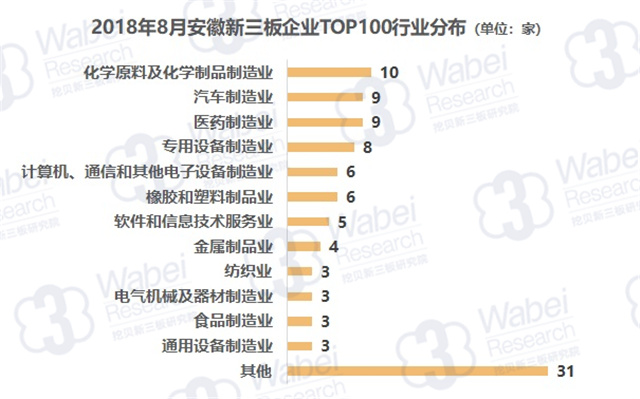 從行業(yè)分布來看,化學(xué)原料及化學(xué)制品制造業(yè)企業(yè)數(shù)量最多,有10家企業(yè);其次是汽車制造業(yè)、醫(yī)藥制造業(yè),均有9家企業(yè);專用設(shè)備制造業(yè)排名第三,有8家企業(yè)。(來源:挖貝新三板研究院)