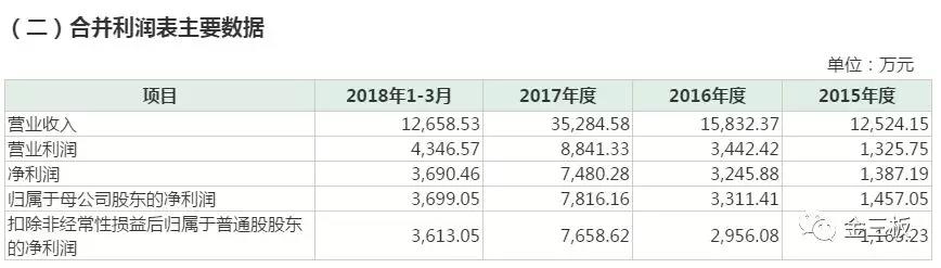 不過,公司在2017年業(yè)績實(shí)現(xiàn)了“爆發(fā)式增長”,營業(yè)收入35,284.58萬元,同比增長122.86%,扣非后歸母凈利潤7658.62萬元,同比增長159.08%。2018年一季度,公司扣非后凈利潤高達(dá)3613.05萬元,一舉“成功逆襲”。