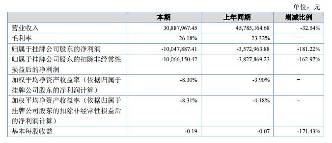 報(bào)告期內(nèi),公司按照年初制定的經(jīng)營計(jì)劃開展各項(xiàng)業(yè)務(wù)。2018年上半年,公司營業(yè)收入3,088.80萬元,較去年同期下降32.54%。報(bào)告期,歸屬于掛牌公司股東的凈利潤-1,004.79萬元,較去年同期下降181.22%。?