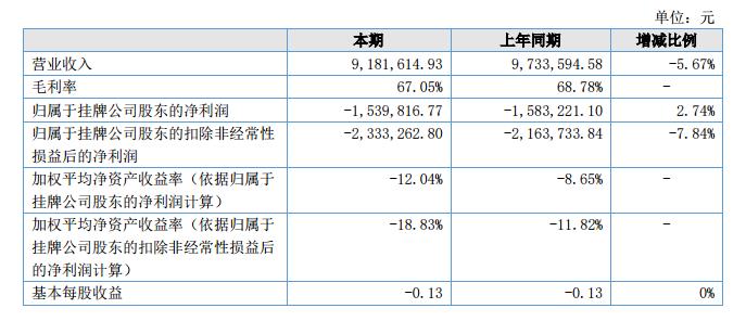 報(bào)告期內(nèi)公司實(shí)現(xiàn)營(yíng)業(yè)收入918.16萬(wàn)元,比上年同期減少5.67%,實(shí)現(xiàn)凈利潤(rùn)-186.14萬(wàn)元,比上年同期下降16.68%;截止2018年6月30日,公司資產(chǎn)總計(jì)1,531.28萬(wàn)元,比期初下降16.67%;凈資產(chǎn)1,182.19萬(wàn)元,比期初下降13.18%。利潤(rùn)及資產(chǎn)減少主要是因?yàn)槭杖氲臏p少、研發(fā)投入的增長(zhǎng)及子公司尚處于發(fā)展投入階段。?