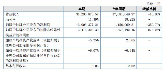 報(bào)告期內(nèi)公司營(yíng)業(yè)收入3,129.09萬元,與上年同期相比,收入減少639.08萬元,下降16.96%;營(yíng)業(yè)利潤(rùn)降低133%,實(shí)現(xiàn)凈利潤(rùn)-300.34萬元,比上年同期大幅降低了359%。?