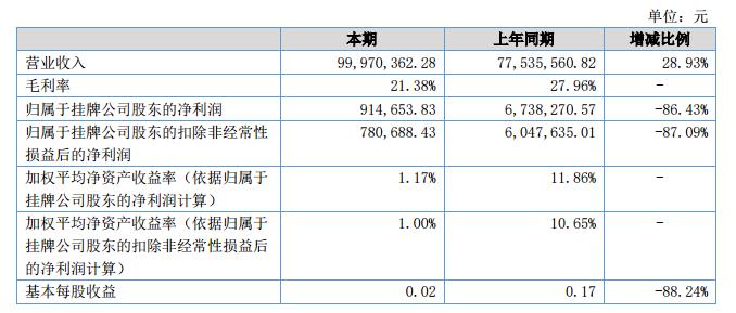 挖貝網(wǎng)9月13日,方圓現(xiàn)代(證券代碼:834381)近日公布的2018年半年報(bào)顯示,截至2018年6月30日,企業(yè)實(shí)現(xiàn)營(yíng)收9997.04萬(wàn)元;歸屬于掛牌公司股東的凈利潤(rùn)為91.46萬(wàn)元。
