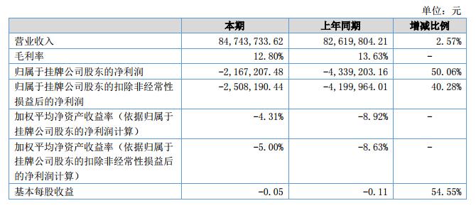 報(bào)告期內(nèi),公司實(shí)現(xiàn)營業(yè)收入84,743,733.62,較上年同期增長2.57%,營業(yè)成本73,893,570.33,較上年同期增長3.55%,凈利潤-2,167,207.48,較上年同期增長50.06%,經(jīng)營活動(dòng)產(chǎn)生的現(xiàn)金流量凈額58,801,552.85,較上年同期增長288.31%。?