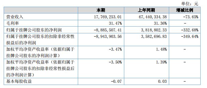 2018年上半年公司實(shí)現(xiàn)營(yíng)業(yè)收入17,769,253.01元,與去年同期相比下降73.65%;實(shí)現(xiàn)凈利潤(rùn)-8,885,507.41元,經(jīng)營(yíng)現(xiàn)金凈流量5,410,799.68元,比上年同期降低5,838,983.80元。營(yíng)業(yè)收入下降的主要原因是因公司目前在手訂單多為核電項(xiàng)目,核電項(xiàng)目對(duì)供貨質(zhì)量要求嚴(yán)格,生產(chǎn)工序要求高,個(gè)別訂單供貨延后,導(dǎo)致整體訂單無法結(jié)算,收入下降,從而導(dǎo)致費(fèi)用相對(duì)增加,凈利潤(rùn)隨之下降。截止2018年6月30日,公司總資產(chǎn)418,581,256.36元,與去年同期下降12.21%,凈資產(chǎn)251,331,563.27元,與去年同期相比下降3.36%。?