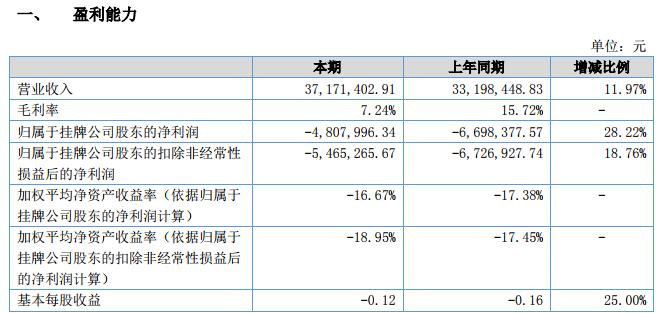 挖貝網(wǎng)訊 9月16日消息,南亮股份(證券代碼:871809)近日公布的2018年半年報(bào)顯示,截至2018年6月30日,企業(yè)實(shí)現(xiàn)營(yíng)收3717.14萬(wàn)元;歸屬于掛牌公司股東的凈利潤(rùn)為-481萬(wàn)元。
