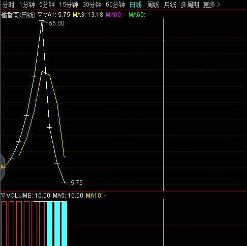 根據(jù)炒股軟件顯示,橘香齋股價(jià)在9月4日、5日、6日大跌3天,每天的跌幅分別為59%、48%和50%。股價(jià)從3月26日的55元/股跌到9月7日5.75元/股,總市值從大約20億元跌到2億元左右;成交量分別為2.23萬(wàn)、1.15萬(wàn)和5750元,總計(jì)大概4萬(wàn)元。