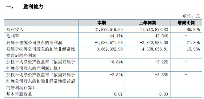 公司 2018 年上半年實現(xiàn)營業(yè)收入 2187.96 萬元,營業(yè)收入同比增長 86.80%,歸屬于掛牌公司股東的凈利潤同比增長 71.80%。其原因在于道路施工的季節(jié)性特征導(dǎo)致報告期內(nèi)部分施工企業(yè)開工較早,對水泥碎石穩(wěn)定混合料、商品混凝土、水泥制管等產(chǎn)品需求較去年同期有所增加,公司產(chǎn)品營業(yè)收入增長率和凈利潤增長率均大幅度提高。公司主要營業(yè)收入和利潤集中在 4-11 月份,報告期內(nèi)公司凈利潤為-108.36 萬元,主要是受公司季節(jié)性停工影響,停工期間費用達 203.32 萬元等綜合因素導(dǎo)致凈利潤出現(xiàn)負值。報告期內(nèi)公司負債同比增長 50.45%,主要原因在于公司備料支出增長及報告期內(nèi)公司員工大幅度增加,應(yīng)付工資上漲。