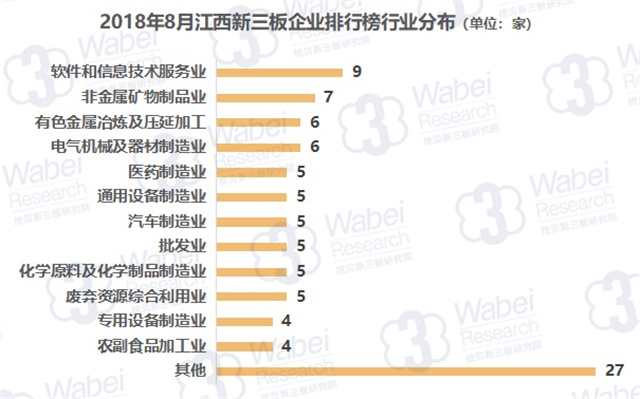 從行業(yè)分布來看,軟件和信息技術服務業(yè)的企業(yè)數(shù)量最多,有9家企業(yè);其次是非金屬礦物制品業(yè)行業(yè),有7家企業(yè)。(來源:挖貝新三板研究院)