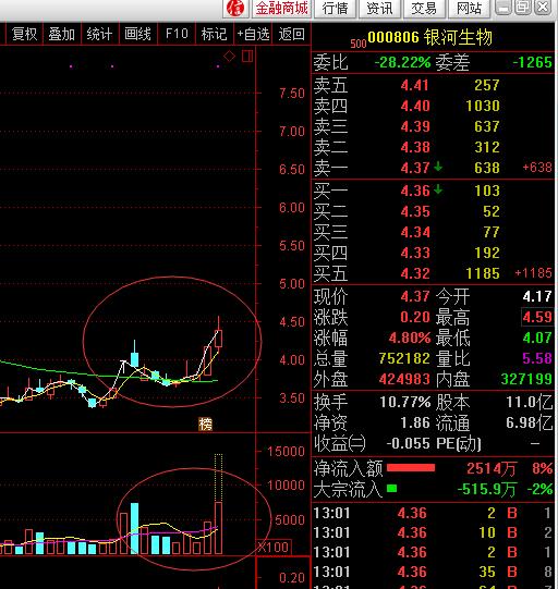 挖貝網(wǎng)訊 10月11日消息,受到隔夜美股暴跌4%的負(fù)面影響,今日A股市場低開低走,截止今日上午收盤,上證指數(shù)下跌4.34%,跌破2638點(diǎn)的前期低點(diǎn)。盤面上,跌停個(gè)股一度接近300只,跌幅超過9%的股票達(dá)到630只,而僅有67只個(gè)股飄紅,其中30只個(gè)股漲幅超過3%。銀河生物(000806.SZ)公告重大利好消息,受到資金關(guān)注,盤中一度觸及漲停,上午收盤有所回落,收漲3.6%,觀察發(fā)現(xiàn),銀河生物最近幾個(gè)交易日出現(xiàn)逆勢放量大漲,近期漲幅一度超過20%,而同期大盤下跌超過7%,顯示出投資者對公司未來發(fā)展的信心,有望繼續(xù)獲得資金關(guān)注。