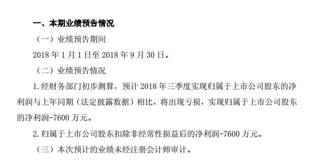 ST 大化 B稱,經(jīng)財(cái)務(wù)部門初步測(cè)算,預(yù)計(jì) 2018 年三季度將出現(xiàn)虧損,虧損為7600 萬(wàn)元。據(jù)了解,第一季度虧損 2958 萬(wàn)元,上半年虧損4797.8萬(wàn)元。加上3季度虧損,公司已經(jīng)連續(xù)3個(gè)季度虧損。