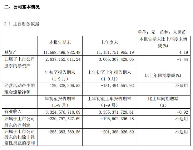 挖貝網(wǎng) 10月12日消息,方正科技發(fā)布前三季度業(yè)績報告,收入33.25億元,同比下跌0.92%。虧損2.31億元,去年同期虧損1.97億元。