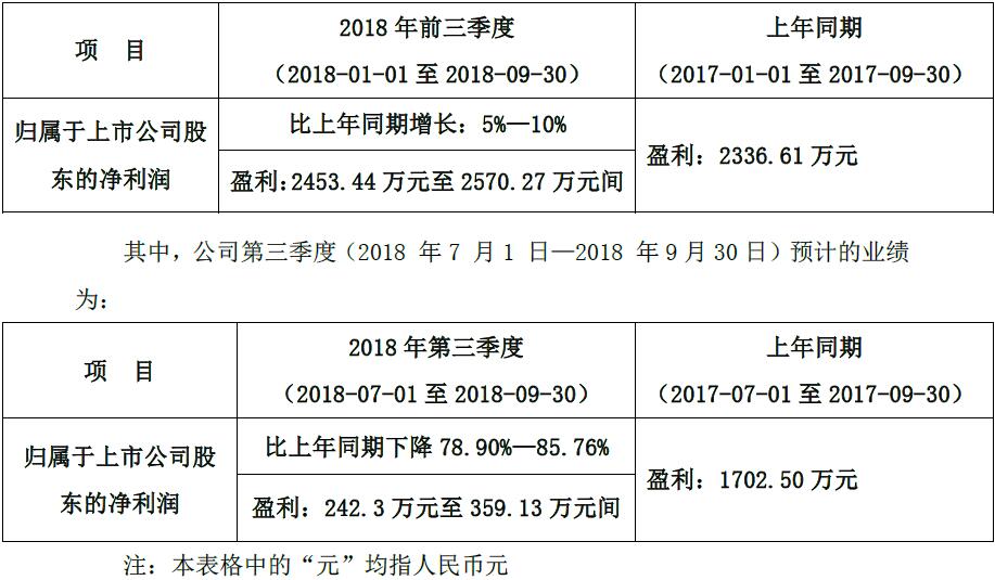 前三季度盈利為2453.44萬元至2570.27萬元間,比上年同期增長為5%—10%,去年同期為2336.61萬元。