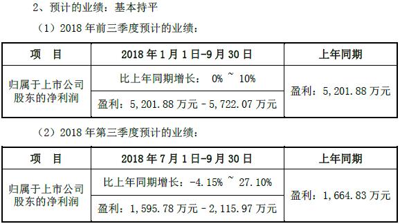 前三季度,盈利為5201.88萬元–5722.07萬元,比上年同期增長為0%—10%,去年同期為5201.88萬元。