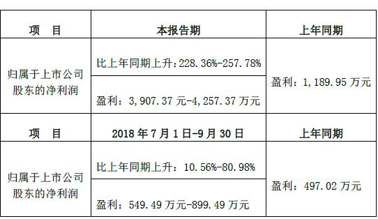 前三季度利潤(rùn)為3,907.37元-4,257.37萬(wàn)元,同比增長(zhǎng)228.36%-257.78%,上一年同期為1,189.95萬(wàn)元。