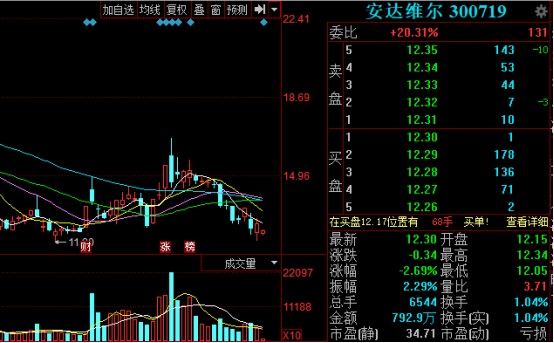 今日開盤,安達維爾低開低走。截至發(fā)稿,安達維爾股價為12.30元/股,跌2.69%。
