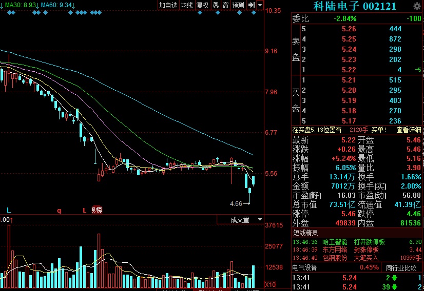 今日,科陸電子漲停開(kāi)盤,高開(kāi)低走,截至發(fā)稿,股價(jià)為5.22元/股,漲5.24%。按去年6月公司員工買入股票時(shí)均價(jià)8.84元/股計(jì)算,持股至今,員工已虧損超40%。