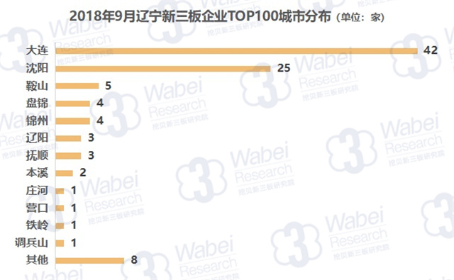 截至2018年9月30日,新三板共有10946家掛牌公司,遼寧有226家新三板企業(yè),占比2.1%;其中141家企業(yè)有市值,占比62.4%。