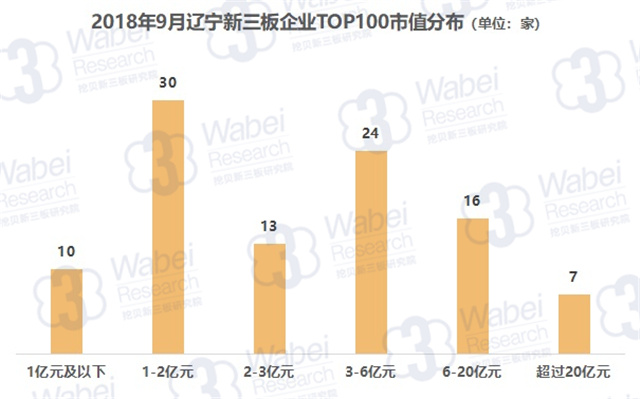 TO100上榜門檻為0.87億元,其中有7家企業(yè)市值超過20億元,而市值在1億元及以下、1-2億元、2-3億元、3-6億元、6-20億元的企業(yè)分別有10家、30家、13家、24家、16家。