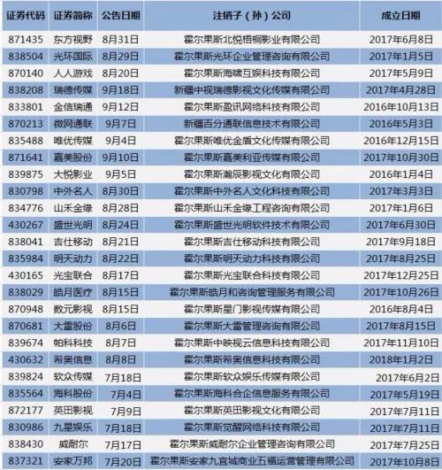 自6月份以來,已經(jīng)有超過100家霍爾果斯的影視公司申請注銷,包括了馮小剛、徐靜蕾等多位知名藝人擔任法人或持股的企業(yè)。