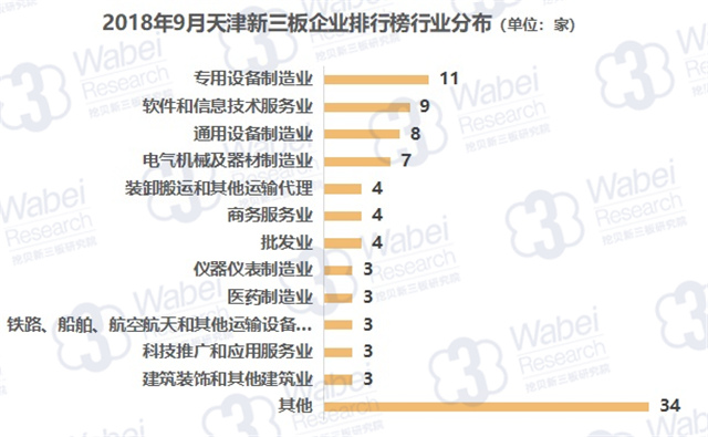 從行業(yè)分布來看,專用設(shè)備制造業(yè)的上榜企業(yè)數(shù)量最多,有11家企業(yè);其次是軟件和信息技術(shù)服務(wù)業(yè),有9家企業(yè);通用設(shè)備制造業(yè)排名第三,有8家企業(yè)。(來源:挖貝新三板研究院)