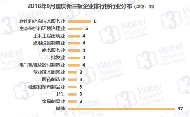 從行業(yè)分布來看,軟件和信息技術(shù)服務(wù)業(yè)的上榜企業(yè)數(shù)量最多,有8家企業(yè);其次是生態(tài)保護和環(huán)境治理業(yè),有5家企業(yè);土木工程建筑業(yè)、通用設(shè)備制造業(yè)等多個行業(yè)排名第三,均有4家企業(yè)。(來源:挖貝新三板研究院)