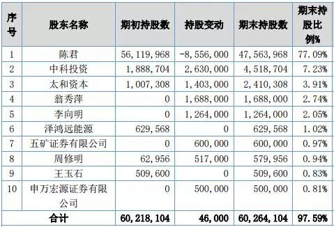 2017年年報(bào)顯示,公司股東人數(shù)為40戶,前十大股東中,多名機(jī)構(gòu)股東上榜,包括中科投資、太和資本以及證券公司五礦證券、申萬宏源證券等。