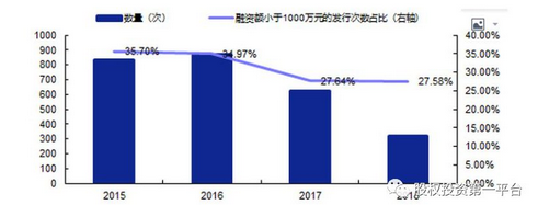 據(jù)安信證券統(tǒng)計,2015年至今,新三板公司單次定增融資金額小于1000萬元的發(fā)行次數(shù)占比達到20%-30%左右,體現(xiàn)了掛牌中小企業(yè)“小額快速”的融資特點。