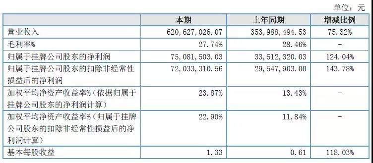 2017年,春暉智控實現(xiàn)營業(yè)收入6.2億元,同比增長75%;凈利潤7508萬元,同比大漲124%。