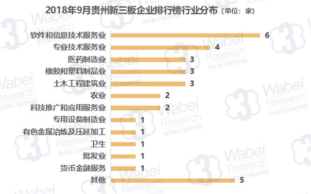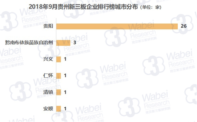 截止到2018年9月30日,新三板共有10946家掛牌公司,貴州有54家新三板企業(yè),占比0.5%;其中33家企業(yè)有市值,占比61.1%。