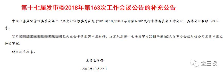 10月30日本應(yīng)是通寶光電IPO上會(huì)的日子,可就在昨晚,公司卻突然“離奇”向證監(jiān)會(huì)申請(qǐng)撤回上市申報(bào)材料。上會(huì)前夕,緊急撤單,人民的經(jīng)驗(yàn)告訴三胖哥:事出反常必有妖!