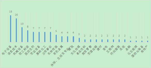 在今年已發(fā)生的并購案例中,來自傳統(tǒng)行業(yè)的買方比較活躍。細分看,今年128起并購案例中涉及24個一級行業(yè)。其中,電子設(shè)備行業(yè)居于首位,并購案例達18起,其次是信息技術(shù)、機械設(shè)備行業(yè)并購案例分別達到16例、10例。