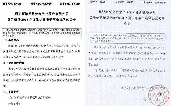 “挖貝新三板領(lǐng)軍企業(yè)年會(huì)”已成功舉辦了兩屆,在業(yè)界頗具影響力,每屆大會(huì)都受到網(wǎng)易、搜狐等權(quán)威媒體的廣泛關(guān)注。同時(shí),年會(huì)獲獎(jiǎng)企業(yè)在領(lǐng)獎(jiǎng)后,紛紛在官網(wǎng)發(fā)文,或發(fā)布公告,以公開(kāi)獲獎(jiǎng)信息。