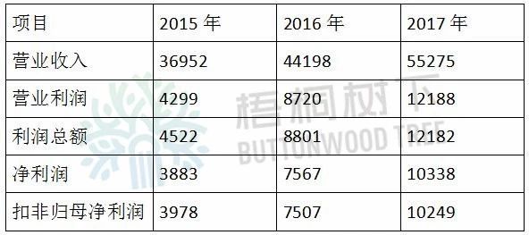 2015年、2016年、2017年公司營業(yè)收入分別為11.28億元、16.34億元、22.94億元,扣非歸母凈利潤分別為4538萬元、18587萬元、21870萬元。2016年的凈利潤是2015年的400%。