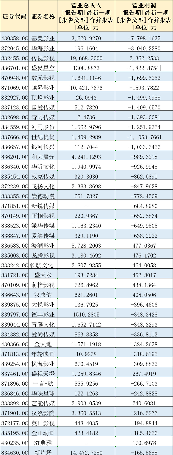 根據最新披露的半年報,有64家新三板影視股處于虧損狀態(tài),占比52%。