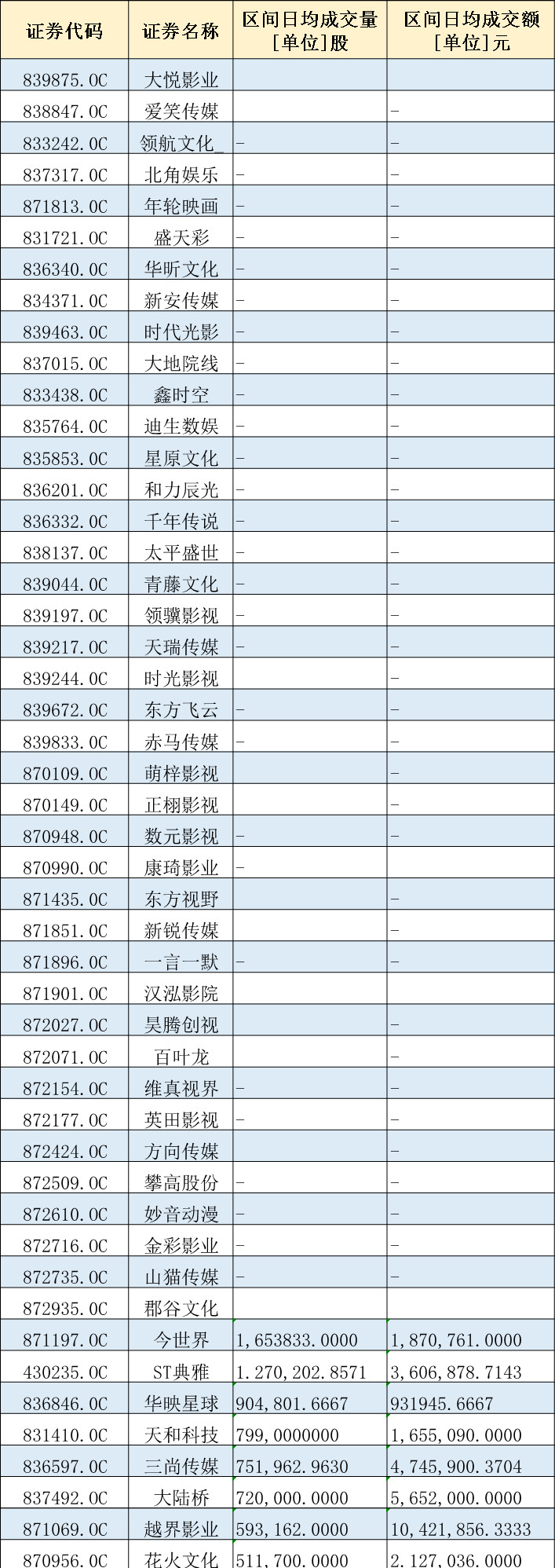 123只新三板影視股票中,40只股票從掛牌到現在,一股成交都沒有,成交額為零。