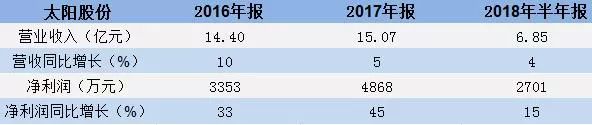 太陽股份核心管理層承諾2018年、2019年、2020年實現(xiàn)凈利潤分別不低于5000萬元、5500萬元、6000萬元,三年累計實現(xiàn)的凈利潤不低于1.65億元。
