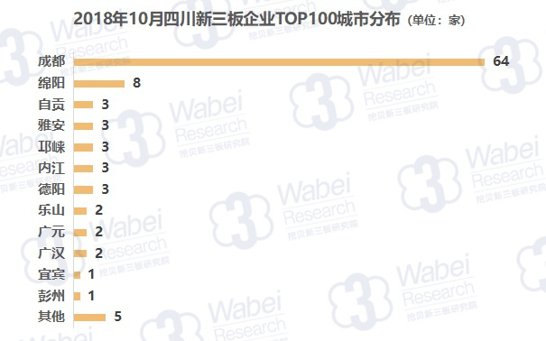 從上榜企業(yè)所處城市分布來看,成都市上榜企業(yè)最多,有64家;其次是綿陽市,有8家企業(yè)。