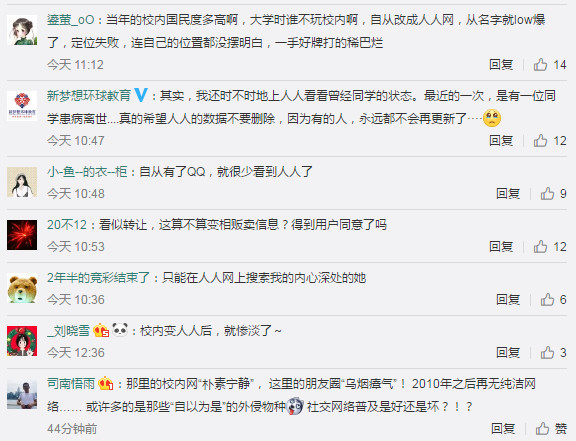 有網(wǎng)友表示,自己曾經(jīng)通過(guò)人人網(wǎng)認(rèn)識(shí)了不少校友,至今雖然不再上人人網(wǎng),但與校友還有聯(lián)系;也有網(wǎng)友表示,自己甚至連賬號(hào)也不記得,但依然懷念以前干凈的界面以及獨(dú)有的方形臉表情包。